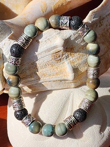 Impression Jasper- Has strong healing properties for both the yin and yang of your body while bring calm and peaceful vibrations, helps lift & transmute your energy recovery, helps balance your mind, body and soul to be in perfect alignment.